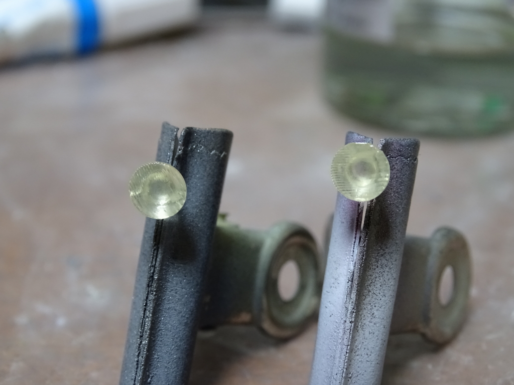 同時にワイドハイターEXに漬け込んでおいたクリアレジンのライトレンズにも、クリアー吹いておきました。 多少は黄変が取れていますね。 |