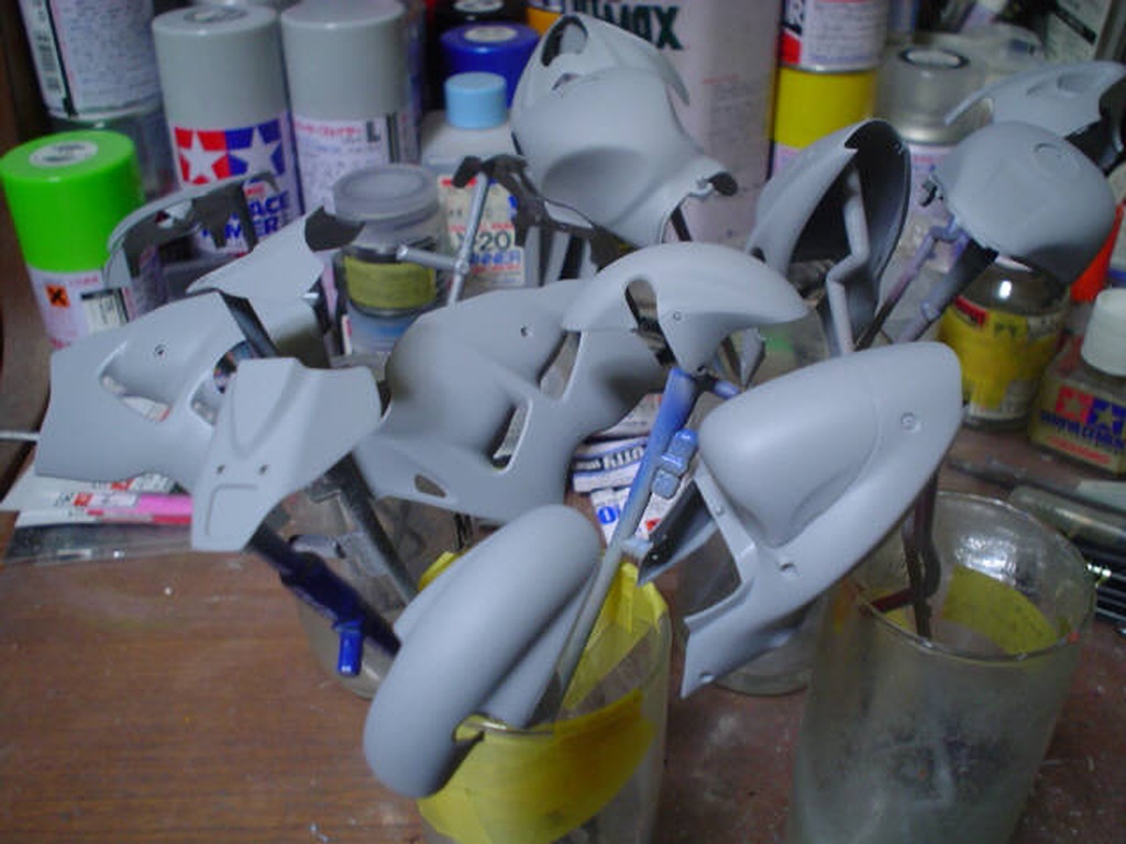 青/銀は完成しましたが、黒/灰のカウルはやり直しです。 |