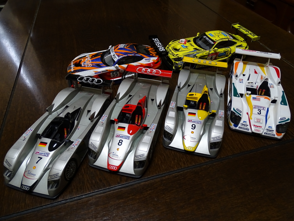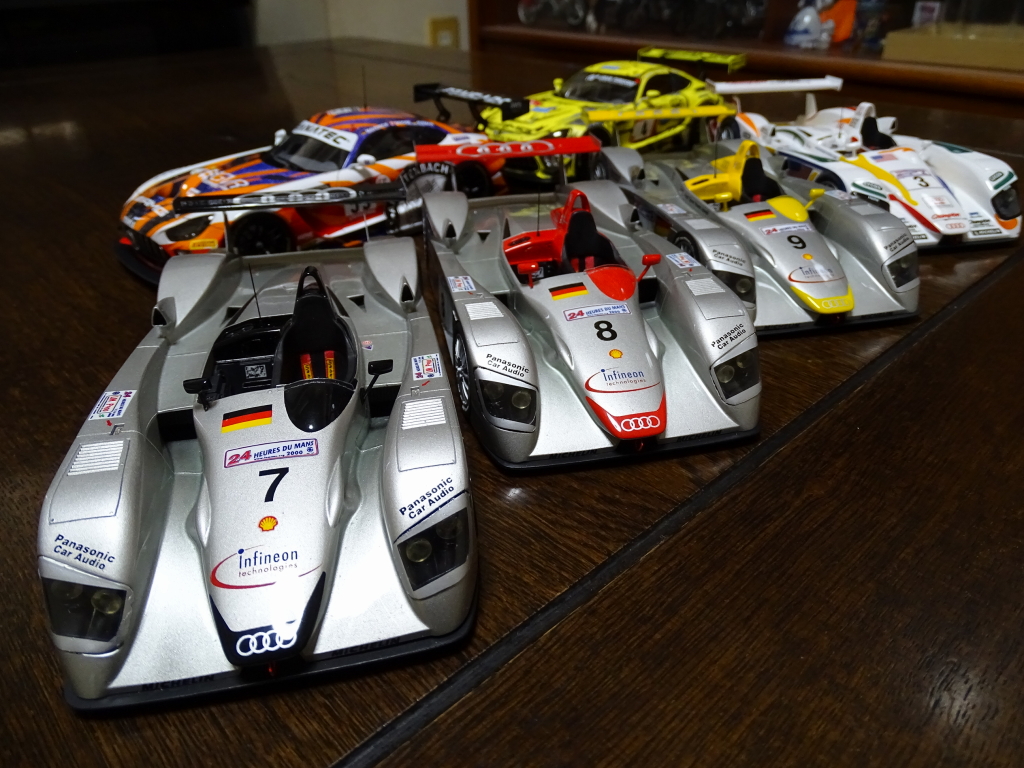この年はついにルマンミニチュアのアウディR8に手を出しました。 一番好きなルマンカーなのです。 2001年の3号車なんかデカールで苦労しましたが、それなりにきれいに作れてよかった。 2025年はホビーフォーラムに大量のR8を並べるべく、延々とR8を作ると思います。 そのためにはもっとペースを上げないとね。
