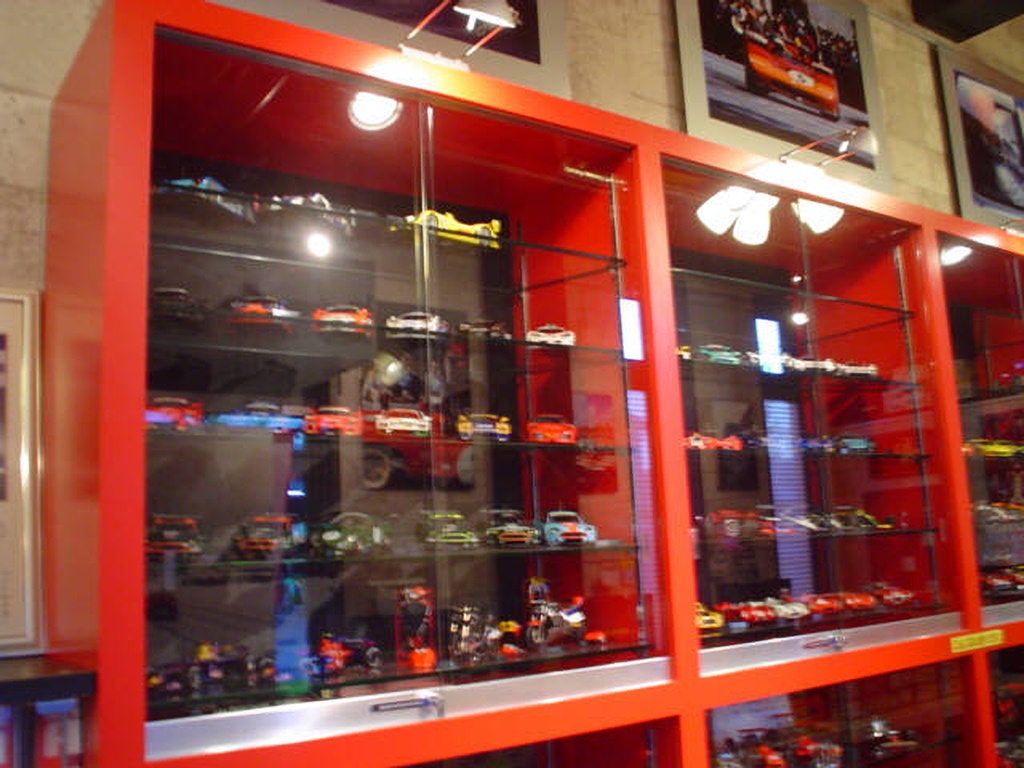 なんだろなぁと近づいていくと、F1とかCカーとかバイクとかラベルが貼ってあります。 |