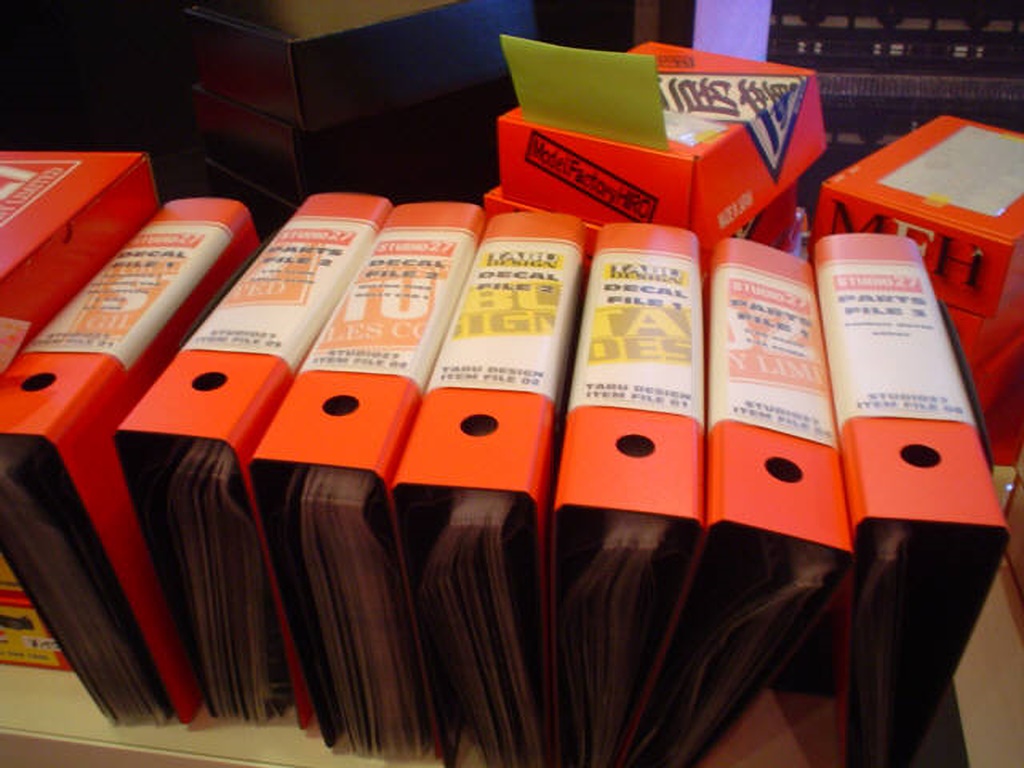 こちらは発売中のデカールをまとめたファイル。 |