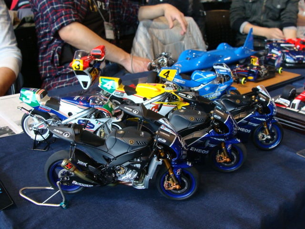 今回はバイクは手前のYZR-M1が2台。 夏のワンフェスに作って持っていったものです。 一番手前のはカウルがはまらなくなってしまったので、はずして展示してます。 |