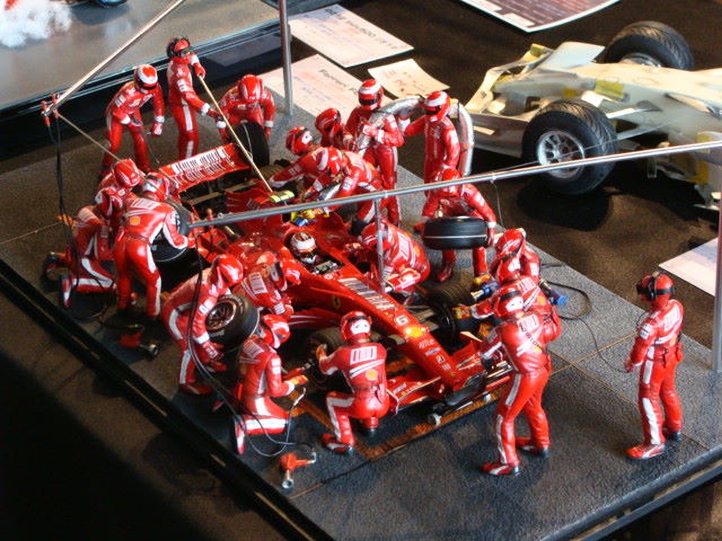こちらはフェラーリのピット風景ですが、ピットクルー多すぎ。 |