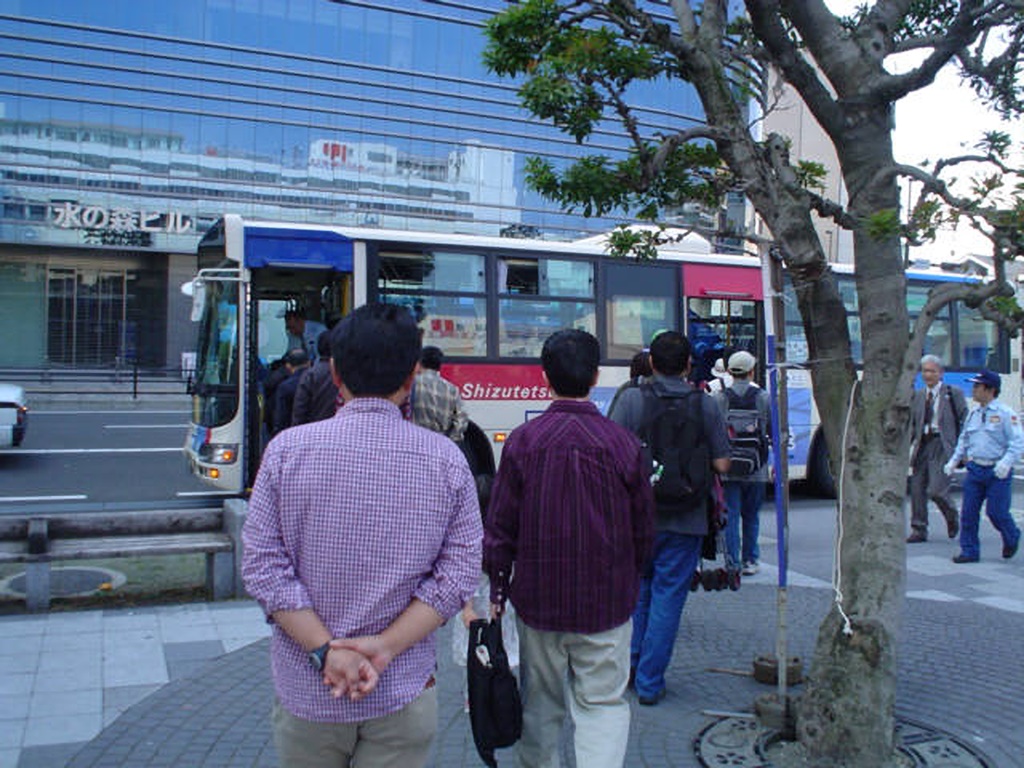 ドーハンさんと共にシャトルバスでツインメッセ静岡へ向かいます。 |