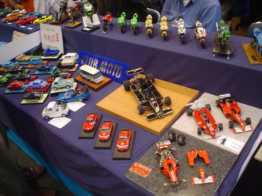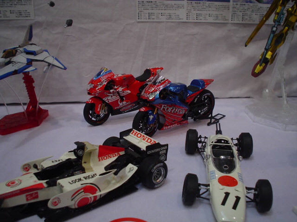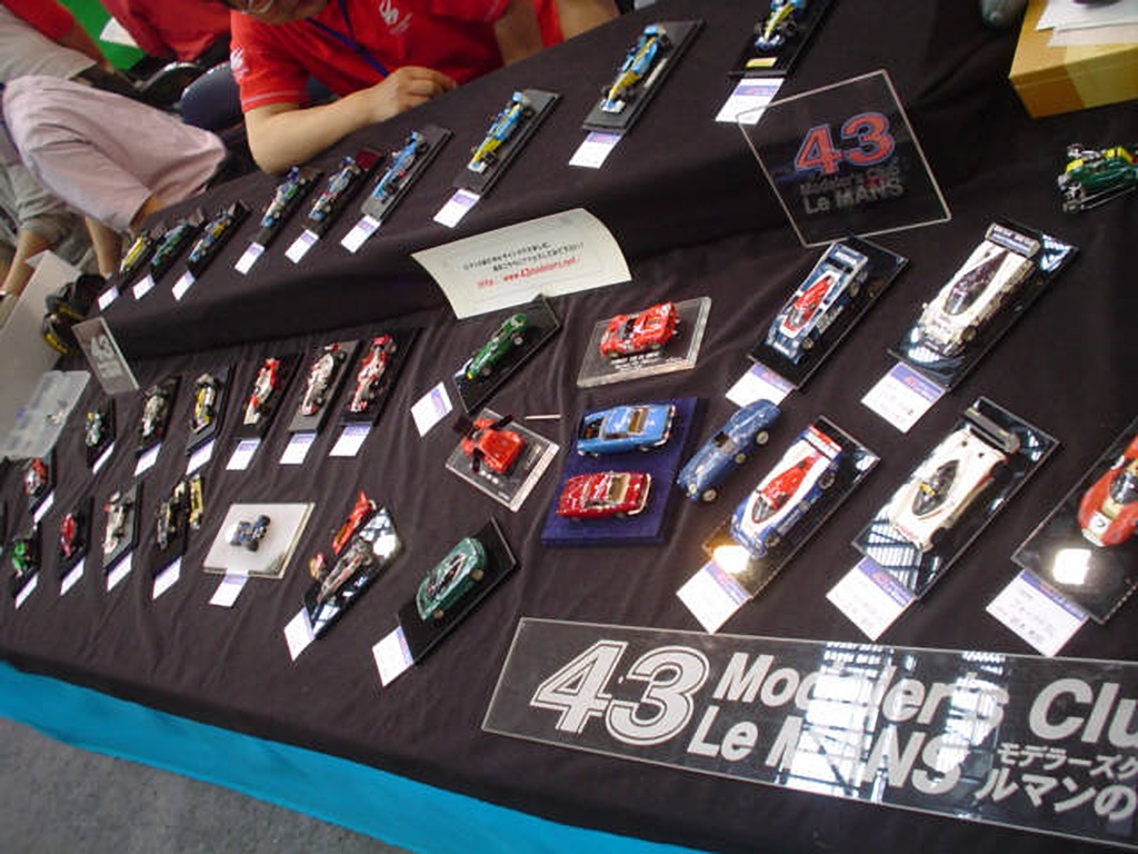 ここも昨年同様CLUB・MOTOの隣になった、レプリカンパニーさんのブースです。 この126C2、ヒロのキットかと思ったらフジミベースとのことですが、使っているのはタイヤとシャーシだけだそうです。 奥のアウディR10(レベルキット使用)も綺麗に出来てました。 |