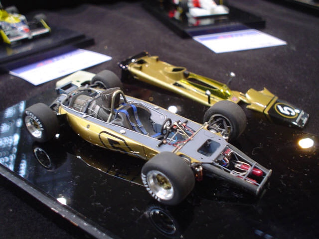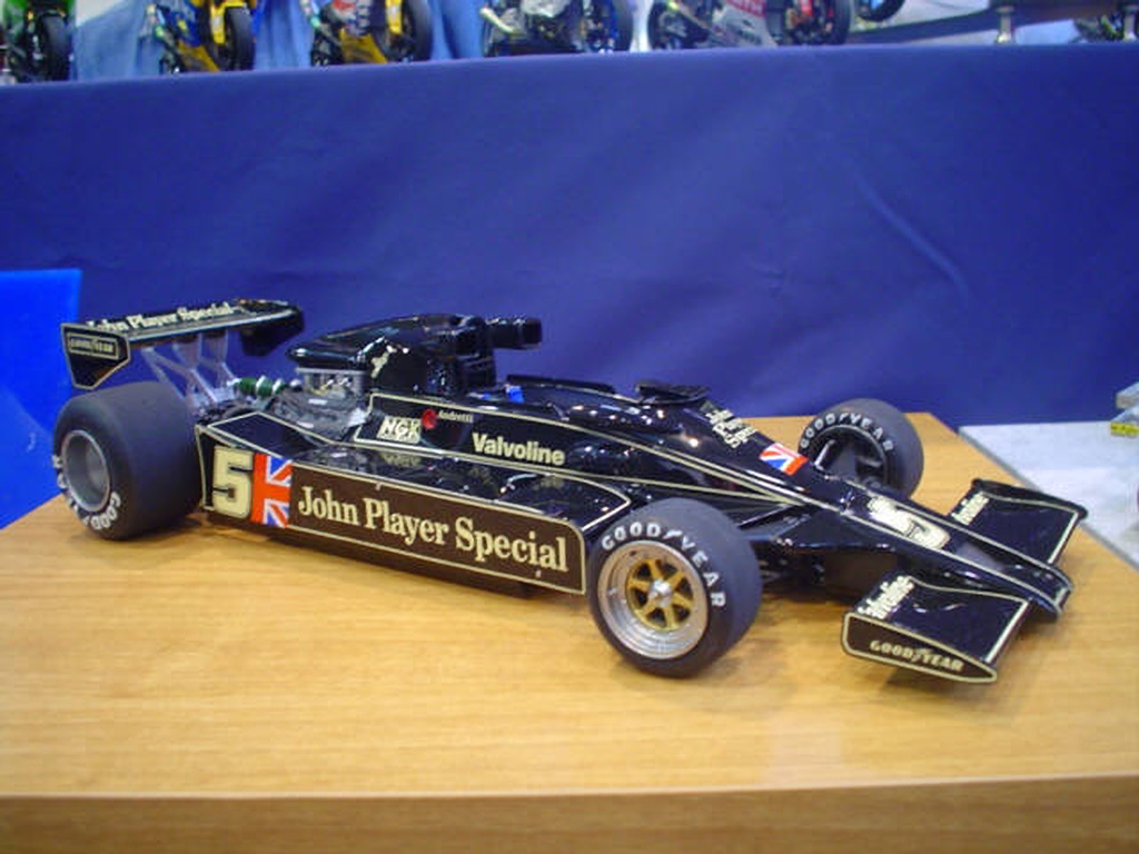 こちらはマイジェルさんの1/12ロータス78(タミヤキット使用)です。 去年間に合わずにばらし状態で展示していたのですが、完成したのですね。 凄い綺麗に出来ています。 |