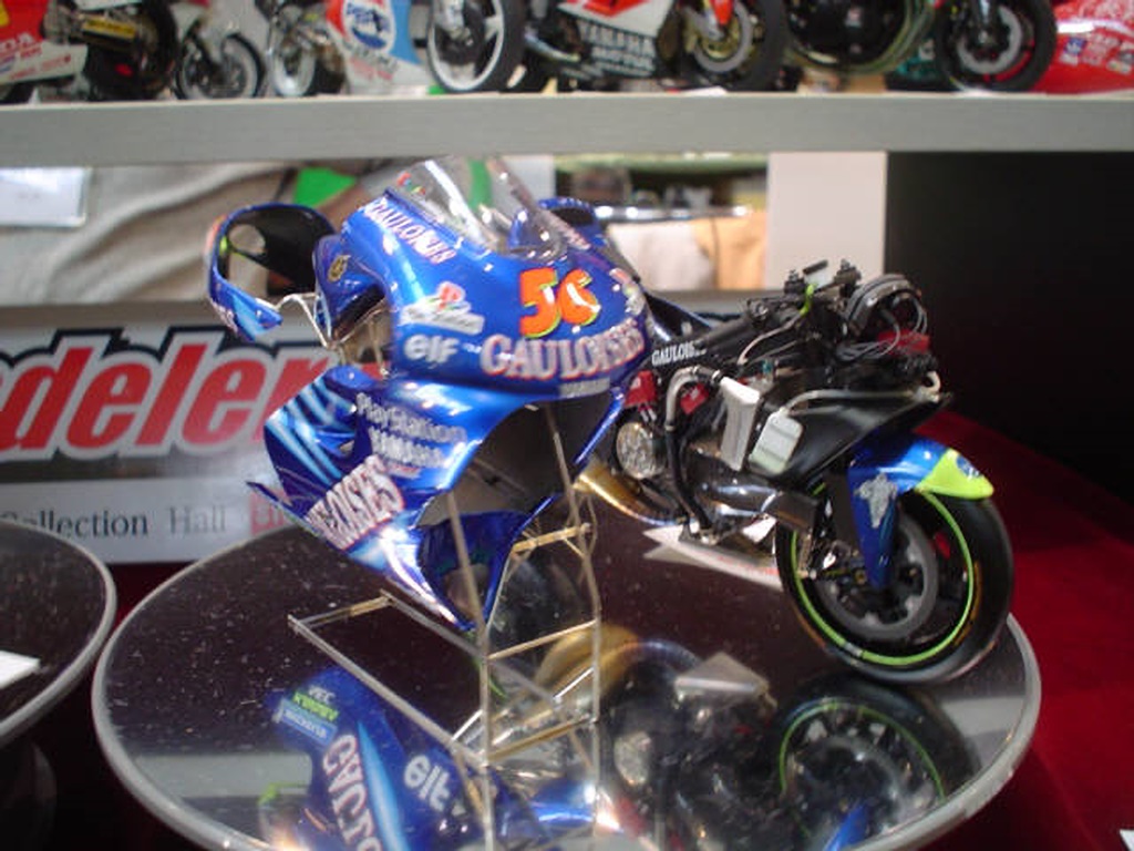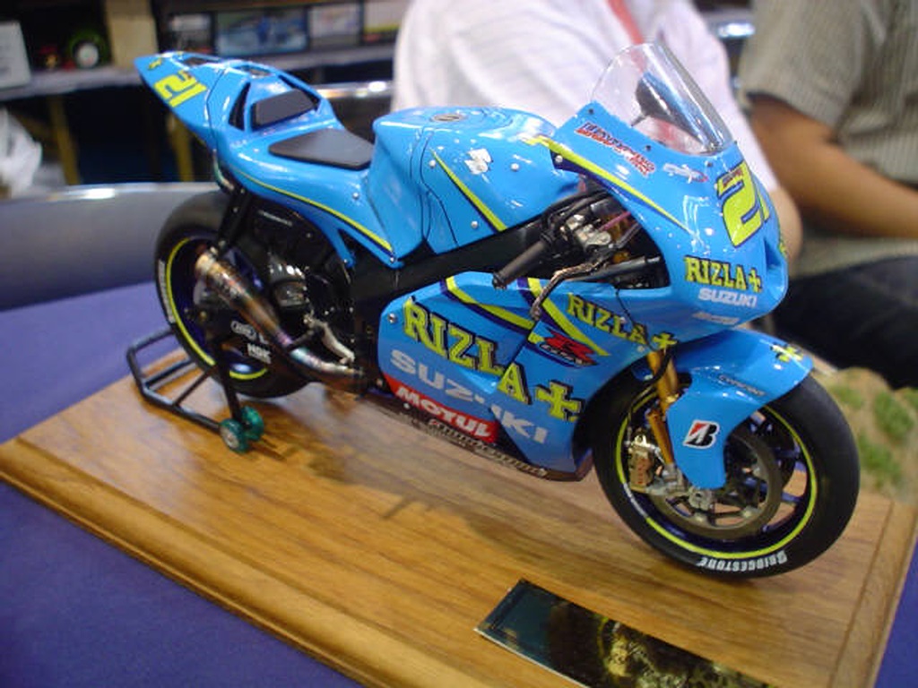 atsumiさんの持ち込んだGSV-R(CGMキット使用)です。 青はフィニッシャーズのスカイブルーにブルーパールをコートしたようですが、クリアーかけたら思ったより濃く仕上がってしまったといっていました。 でも写真では実車写真と同じように明るく写ってるから、実は正解では?