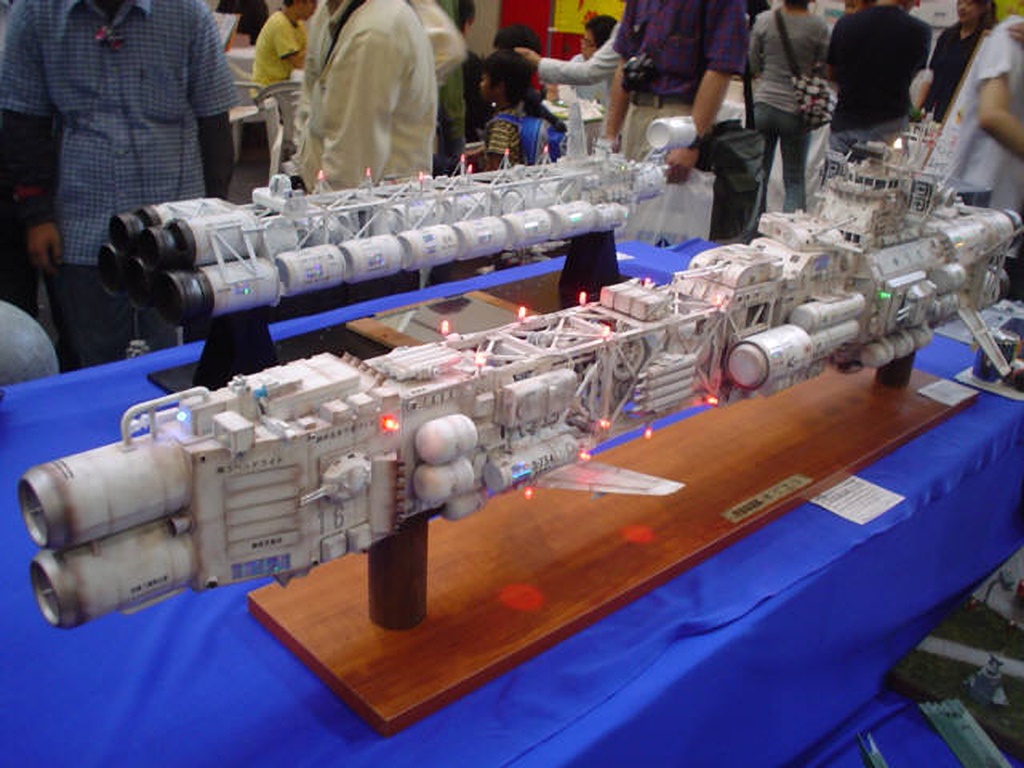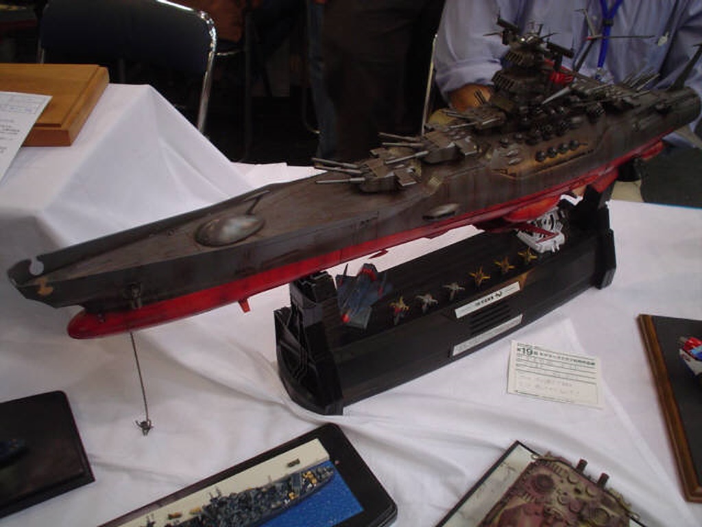 ブース名は忘れましたが、大きな宇宙戦艦ヤマトがありました。 汚し塗装がリアル感を演出しています。 |