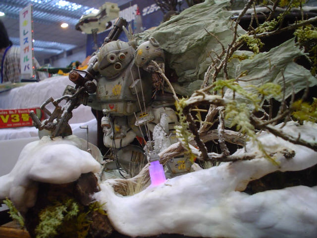 ここは去年ガンプラを使って素晴らしいジオラマを作っていたところです。 今回はボトムズですね。 相変わらずアートな世界です。 |