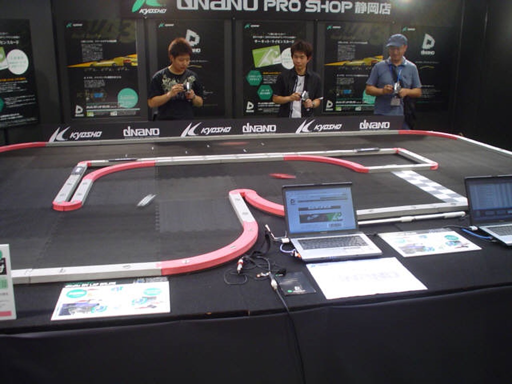まずは京商。 ミニッツより小さい1/43のラジコンを前面に出してました。 これなかなか面白そうです。 |