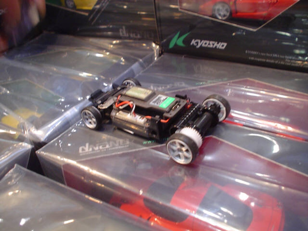 京商の人にシャーシを見せていただきました。 携帯電話のバイブ用のモーターを使っているそうです。 ほんとに手に乗るサイズです。 こんなに小さいと、よほど平坦なところでない限り、ちょっとしたギャップでも操作性が大きく影響されそうです。 しかし、オプションですがデジカメの手ブレ補正の技術を応用したジャイロで回避できるそうです。 ギャップを検知すると自動でカウンターを当てたり、それでも挙動が乱れた場合はスロットルも自動で緩めたりするそうです。 実車で言う横滑り防止装置とかトラクションコントロールとかに近いですね。 |