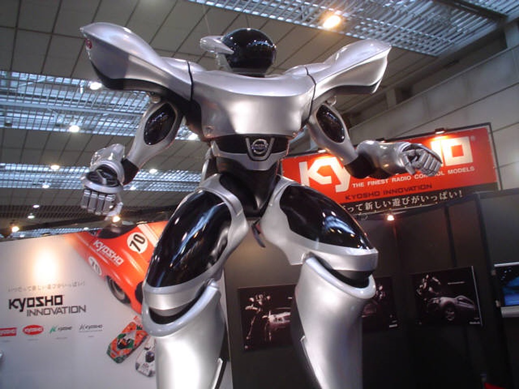 で、なぜか京商のブースにあった、日産デュアリスのCMに登場するロボット形態のデュアリスです。 恐らく実物大なのでしょうが、凄く大きいです。 |