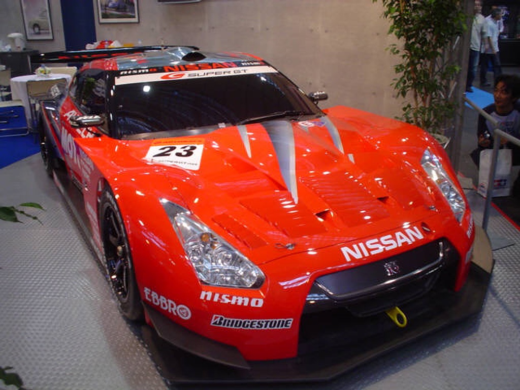 こちらはエブロのブースに展示されていた、スーパーGT参戦中の日産GT-Rのレース車です。 ウインドウが黒でマスクされていました。 展示専用の車両なのかな? |