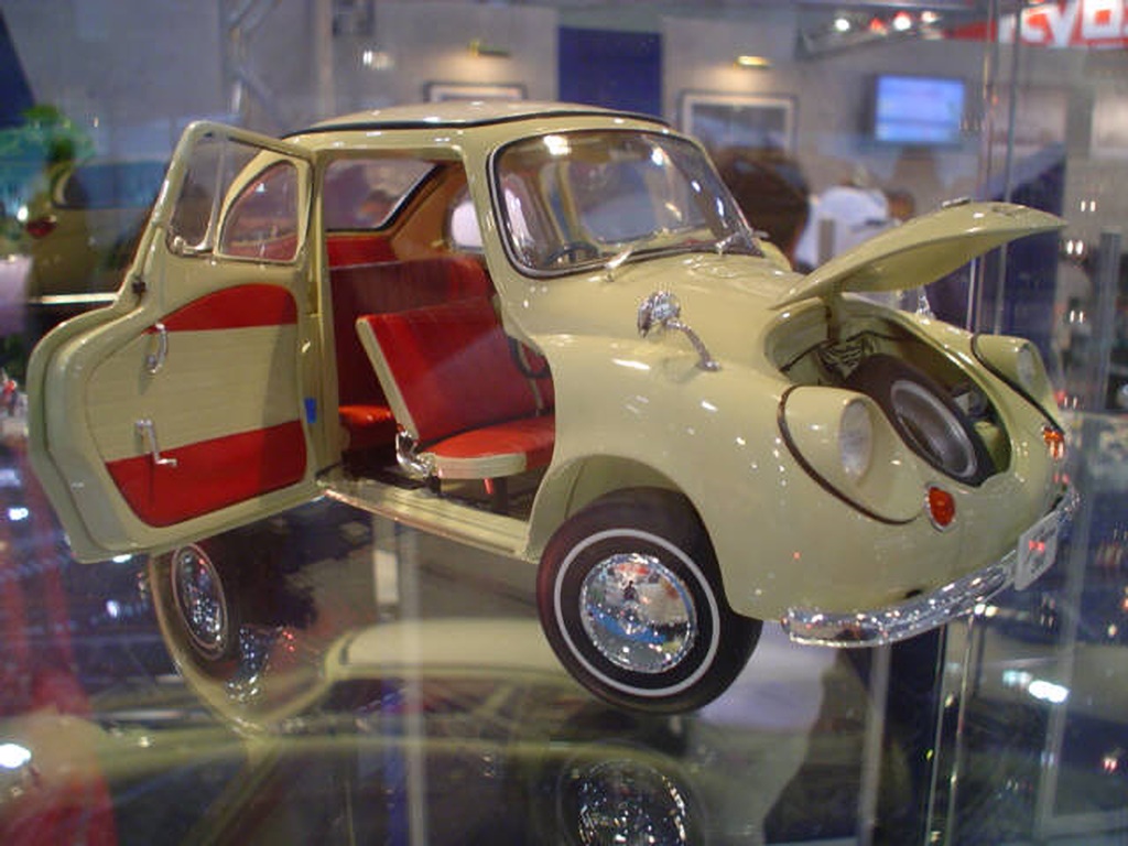 同じエブロブースにあった、スバル360の完成品です。 現物が小さいのでサイズが良く分かりませんが、1/8かな? 良く出来てます。 |