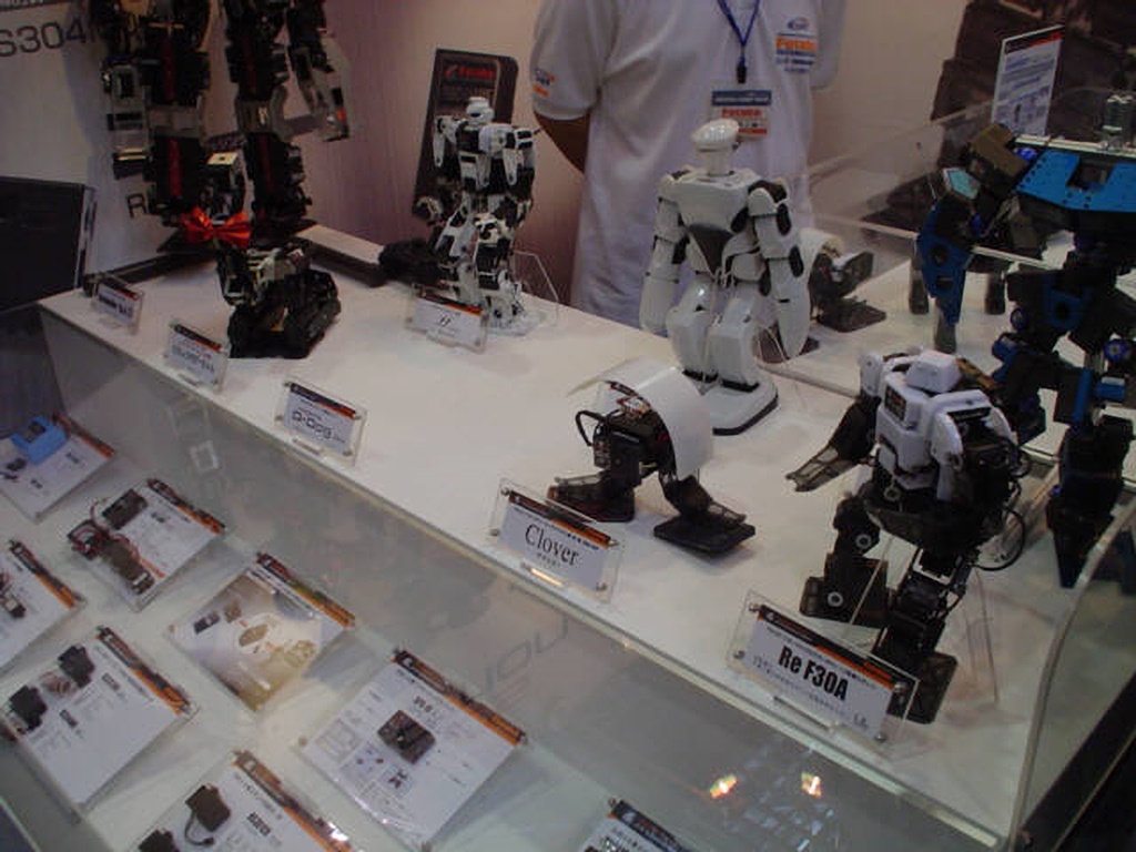 こちらはフタバブースにあったロボット。 フタバでは飛行機やヘリのフライトシミュレータがありましたが、要求されるPCのスペックがあまりに高いので買えそうもないです。 |