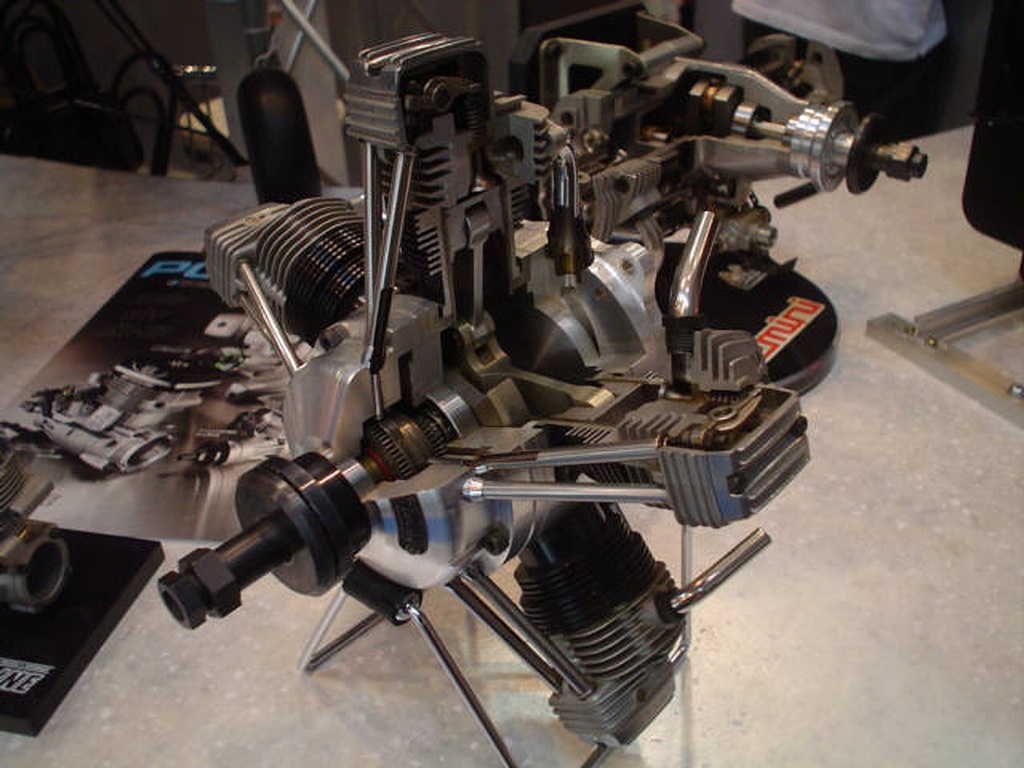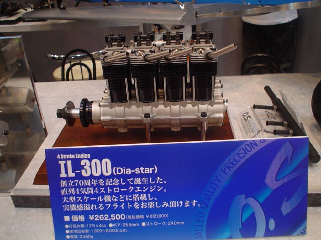 こちらも小川精機のブースにあった、50cc直列4気筒エンジンです。 ラジコン用で直列エンジンって珍しいです。 |