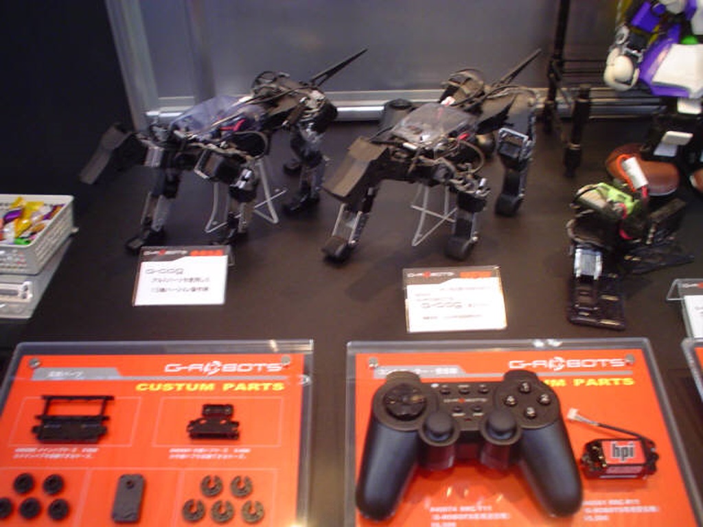 こちらはHPIのブースにあった、プレステのコントローラーで動かせるロボット犬です。 なぜ犬なのかは分かりません。 |