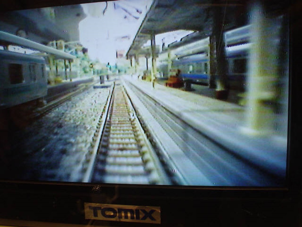その走らせているNゲージに小型カメラを仕込んで、その画像をモニターで流していました。 これが結構リアルなんですよ。 |