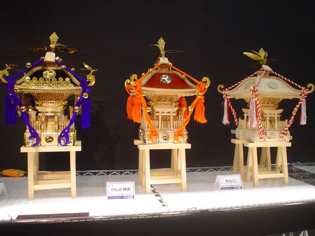 こちらはウッディ・ジョーのブースかな? 昨年もあった木製模型ですが、今回は神輿がありました。 |