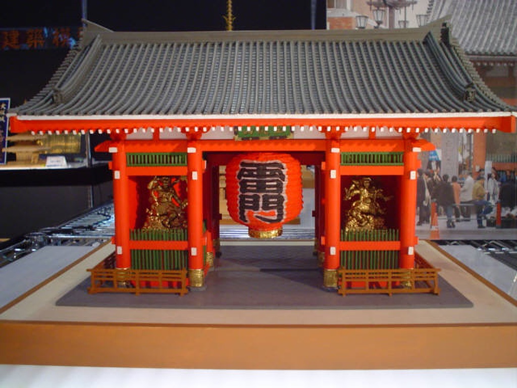 こちらは、浅草の雷門ですね。 ここの木製模型、1個買って作ってみたいのですが、結構なお値段するんですよねぇ。 |
