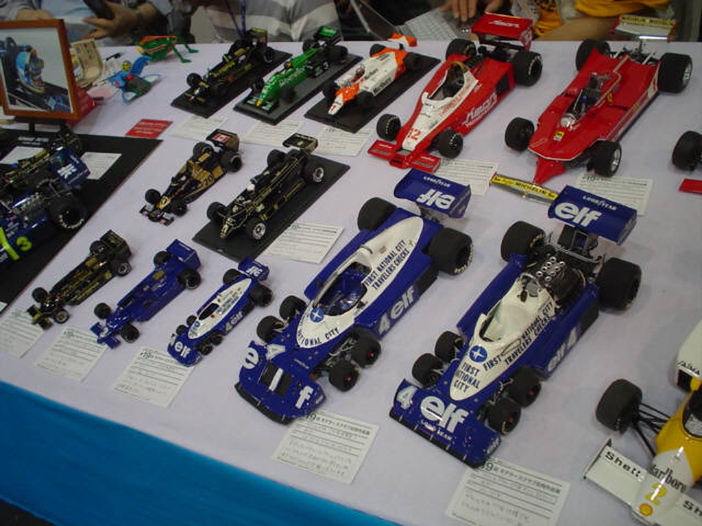 こちらは世界ブラックマント同盟さんのブースです。 3年前はロータス91、2年前はMP4/1、去年はウルフWR7と来て、今年はティレル011(ACE-MODELSのキットでしょうか?)がありました。 どうやら私と同じようなF1趣味の方がいるようですね。 |