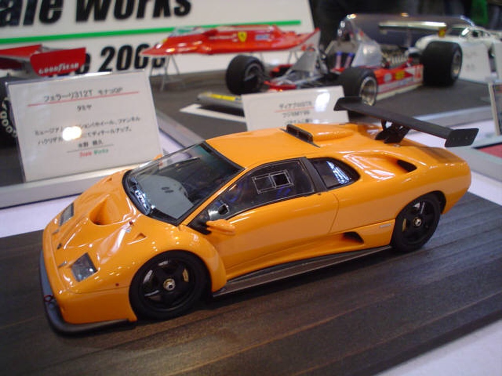 このディアブロGTは、実はかなりの大改造で基本フォルムも直しているそうです。 ライトは実車同様Z32(タミヤの?)のものを移植したそうです。 |