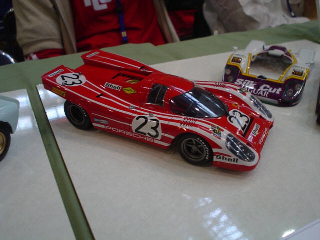 同じブースにあったポルシェ917Kです。 フジミのキットでしょうか? とても綺麗に出来てますが、やっぱりかなり手が入ってるんでしょうね。 作りたい車種ではあるんですが、なかなかフジミのキットを買う勇気がありません。 |