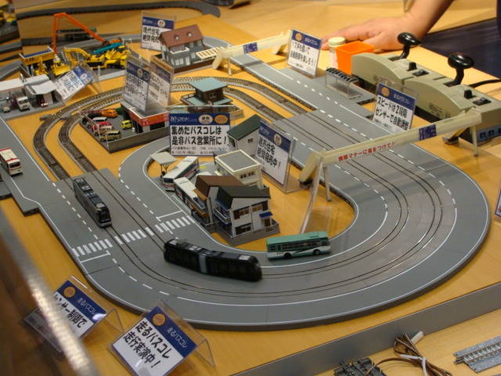 TOMIXでは、なんとNゲージだけでなくバスも走ってました。 なかなか面白い発想ですね。 |