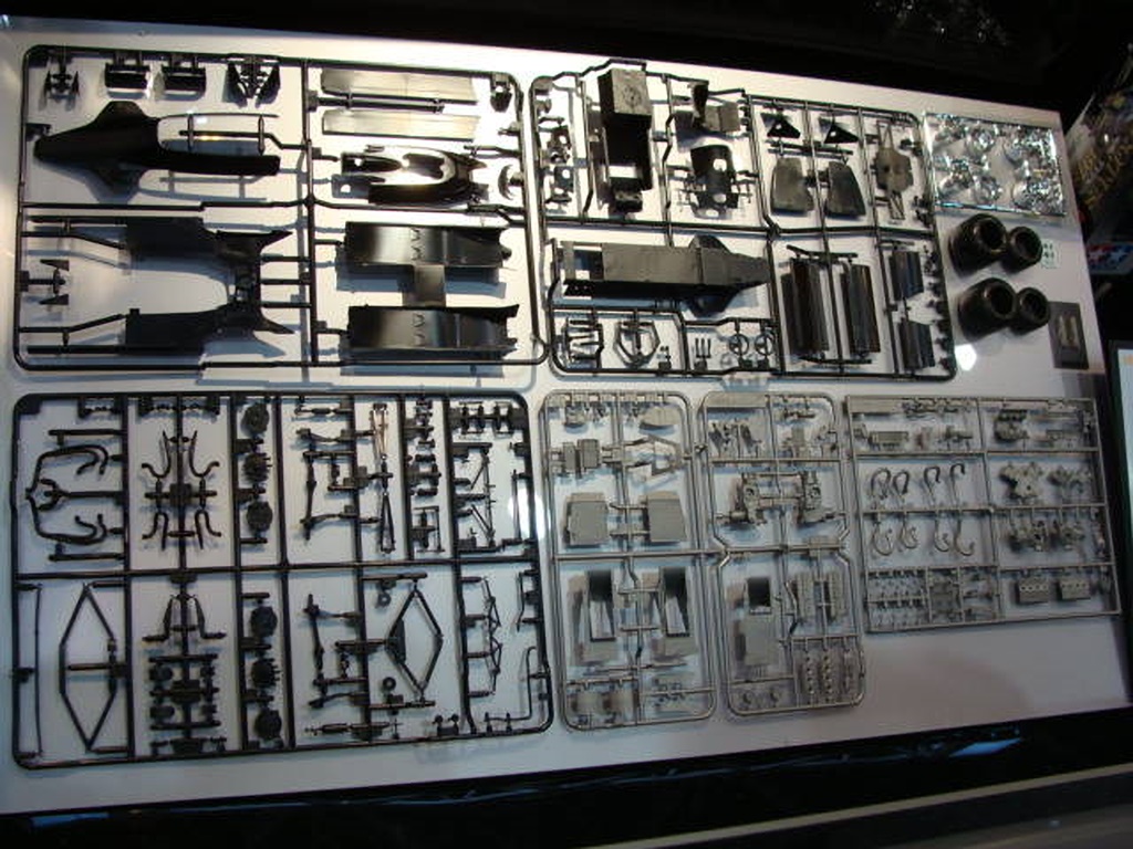 パーツはもちろんタミヤクオリティですが、エンジンのパーツは30年前の同社F1キットのものそのままですね。 |