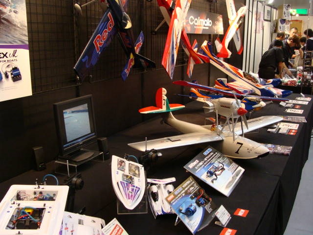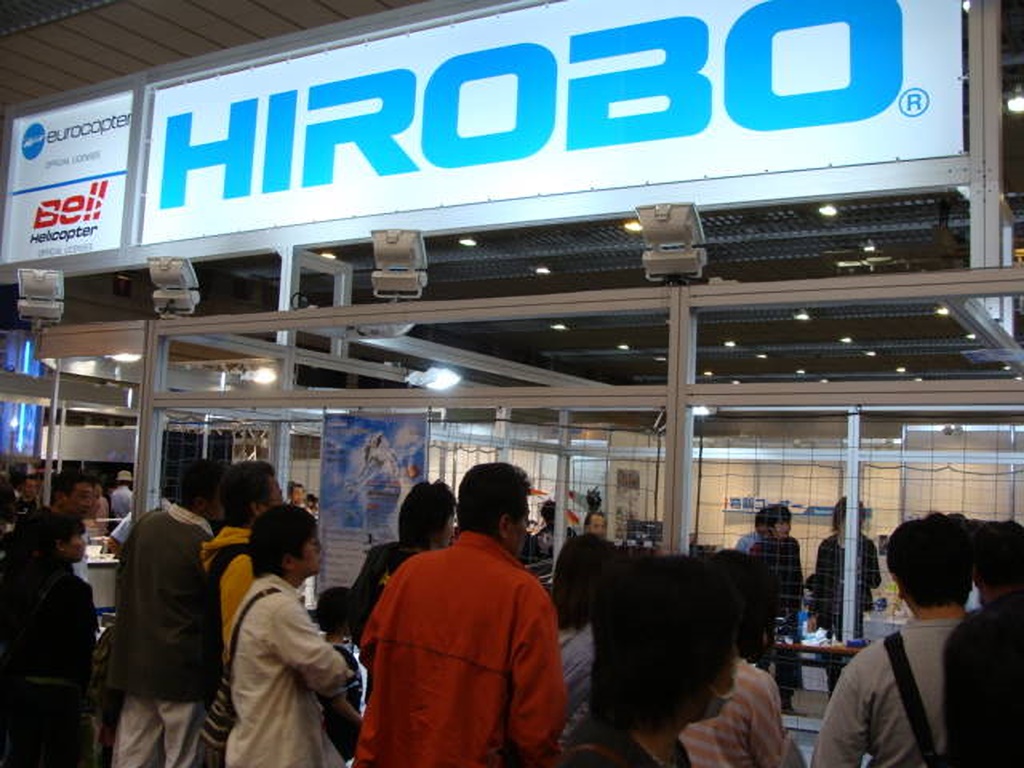 ヒロボーのブースでは、いつも通りラジコンヘリの実演ですね。 |