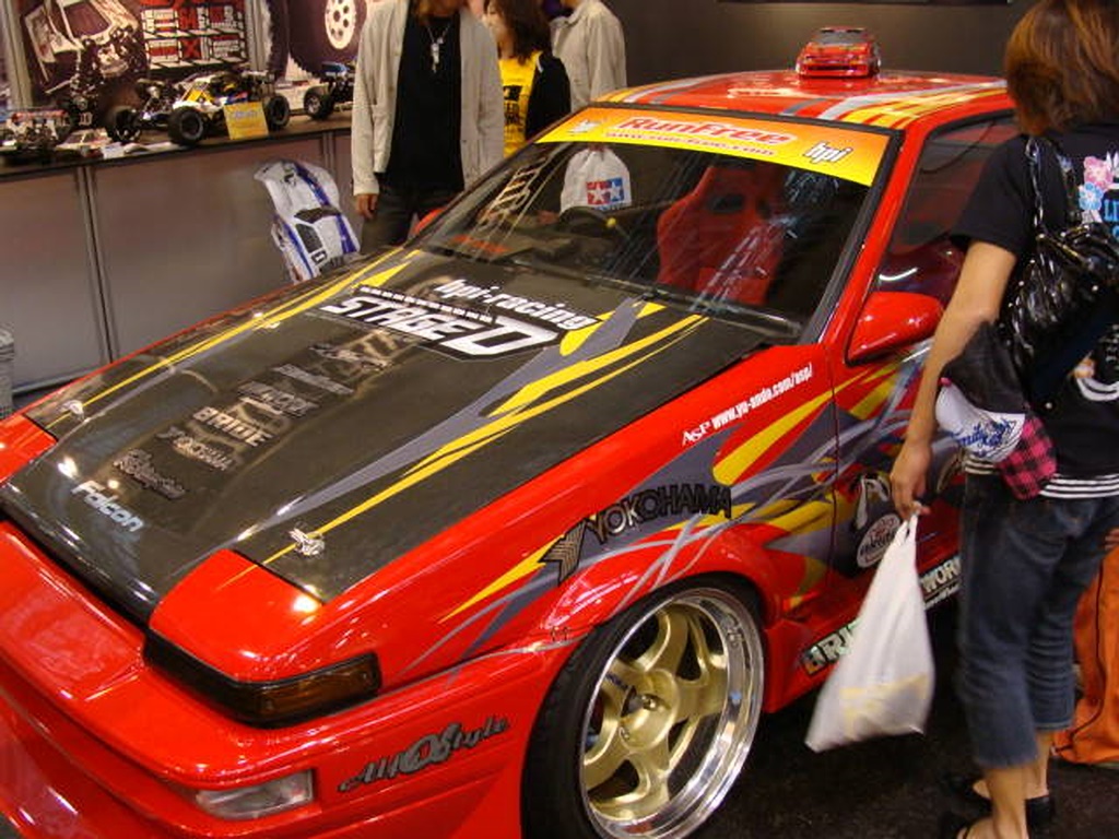 こちらはHPIのブース。 前回同様実車を持ち込み、その実写と全く同じラジコンを屋根の上に置いていました。 |