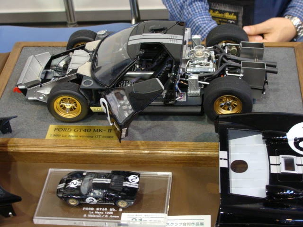こちらにはトランペッターの1/12のキットを組んだ、巨大なフォードGT40が展示してありました。 このキットは超絶なディティールアップキットが出ているので気にはなっているのですが、ベースがトランペッターということもあり、買ってはいません。 |