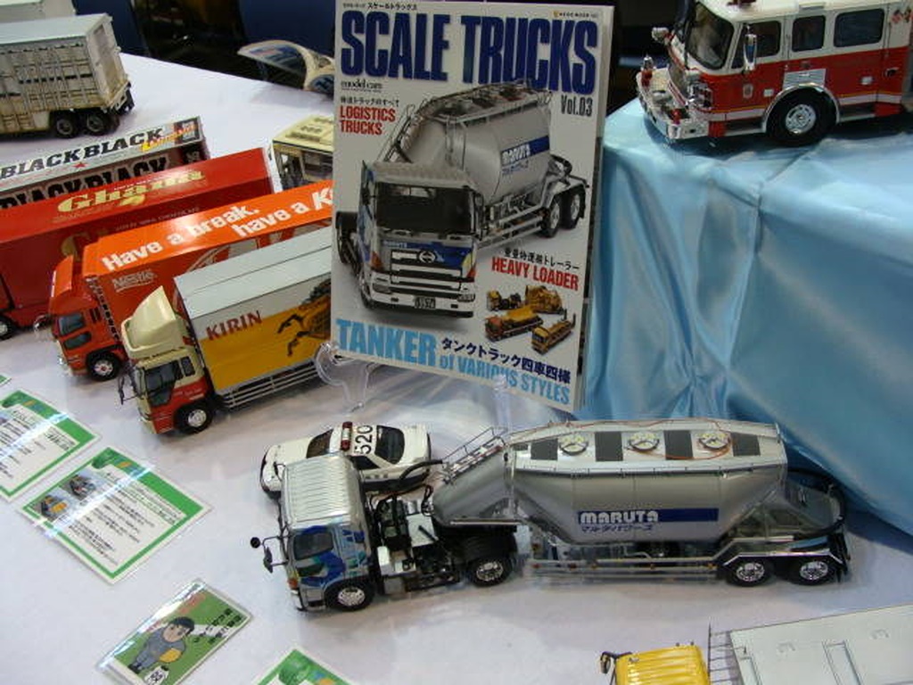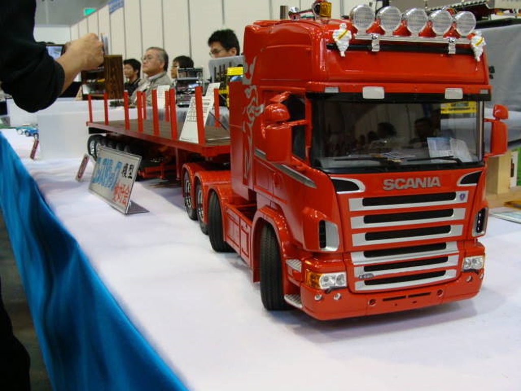 このどデカイスカニアはタミヤのラジコンがベースとのことですが、細かく手が入っている模様。 車内には地図や雑誌などの小物が見事に縮小されて仕込まれていました。 |