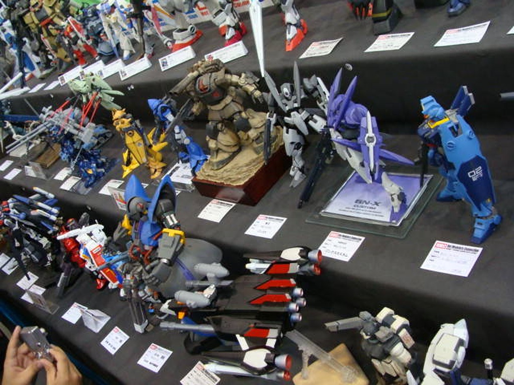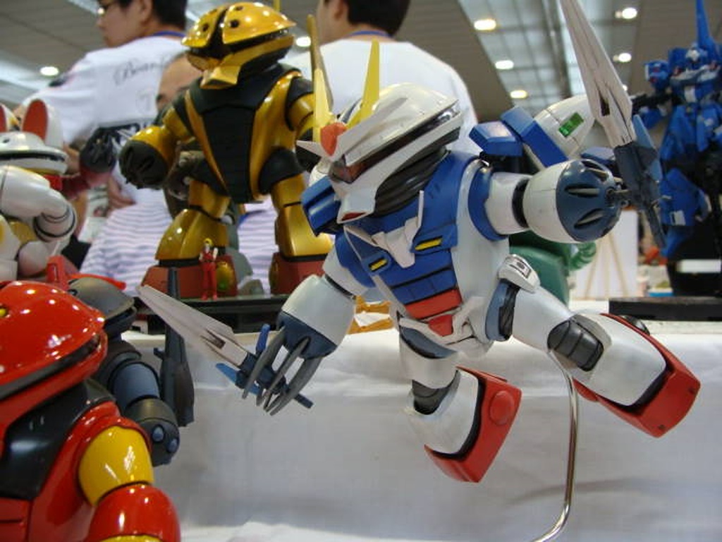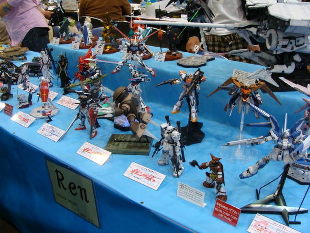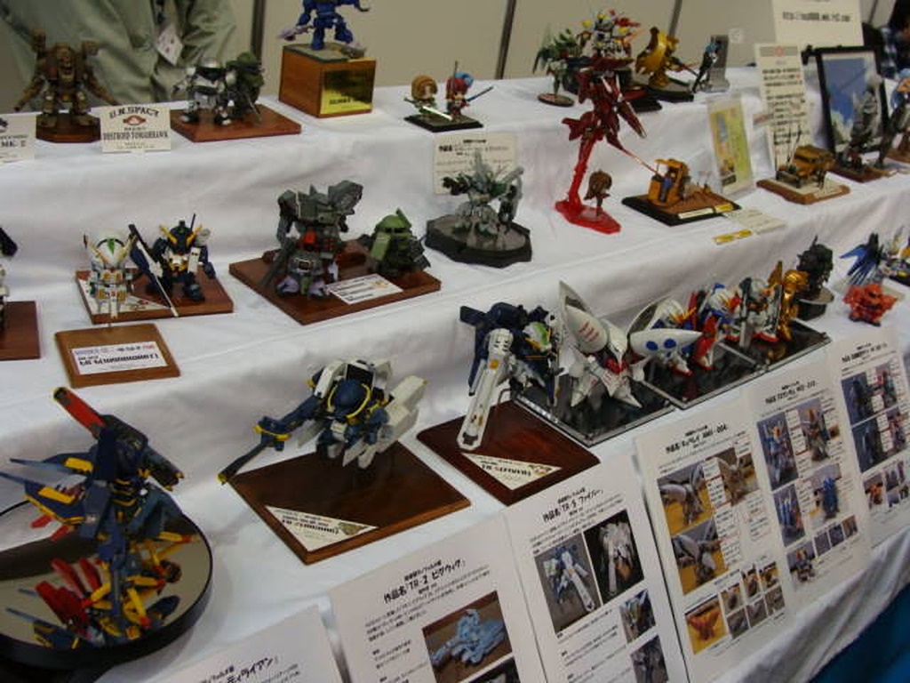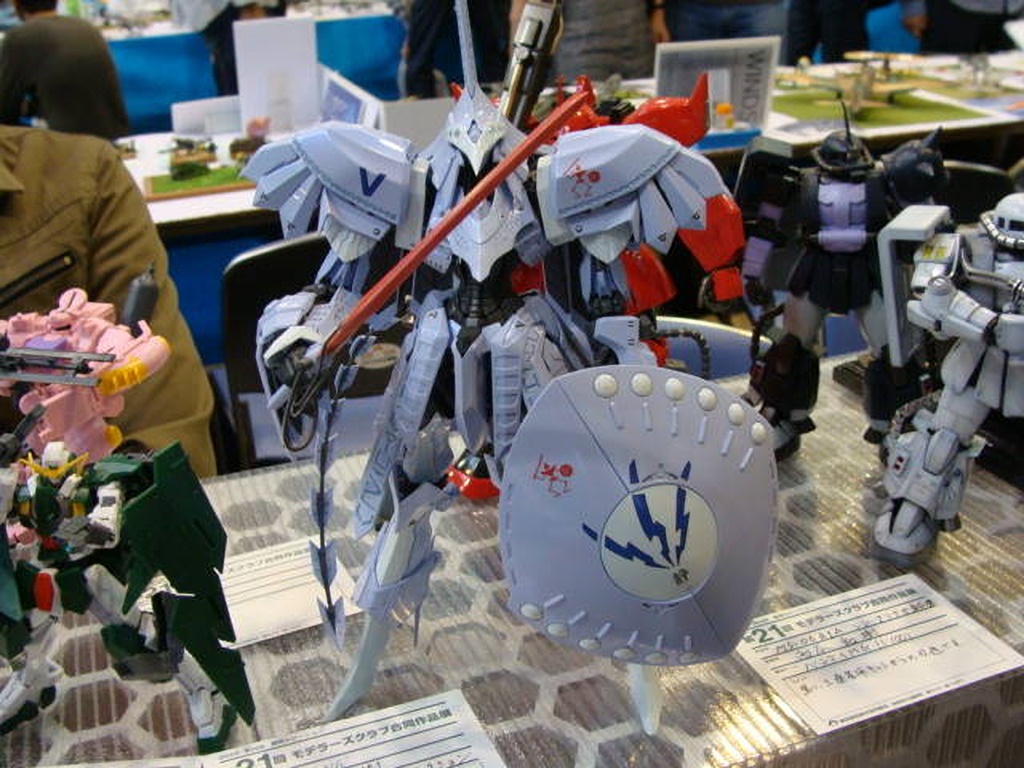この展示展では珍しいFSSもの、ボークスのナイトオブゴールドがありました。 砲身長すぎて画像に収まりきりません。 私は素立ちのキットを持ってますが、バスター砲発射形態も思ったより良いですね。 |