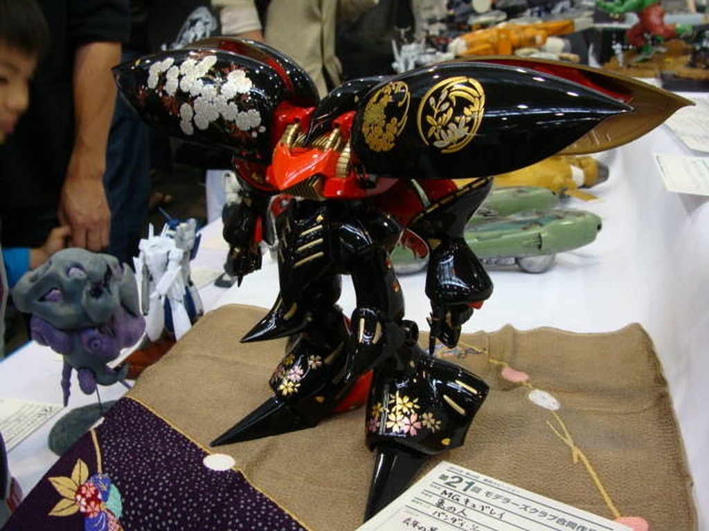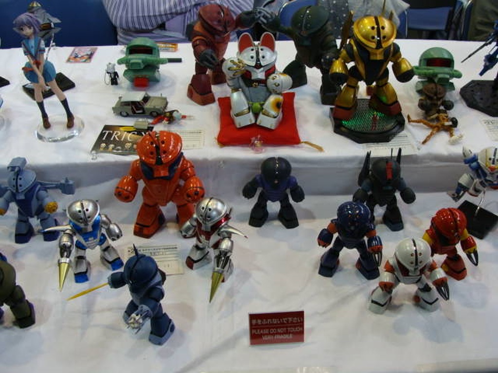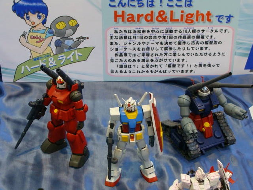 写真のロボット兵は原寸大(全高3.5m)で、門の前に立ててあり近所の注目の的だとか。 さすがにこれは会場に持ってこれませんね。 |