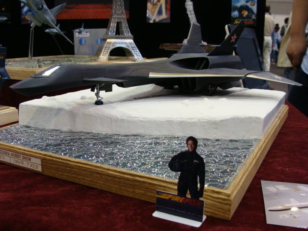 これ、映画「ファイアーフォックス」に登場した、頭の中でロシア語でイメージするとその通りに飛行するという、その名もファイアーフォックス。 映画はクリントイーストウッドがロシアに潜入して盗み出すというストーリーで、途中、燃料補給のために米潜水艦を氷上で待っているところの再現でしょうか。 父が好きな映画だったのでよく覚えています。 |