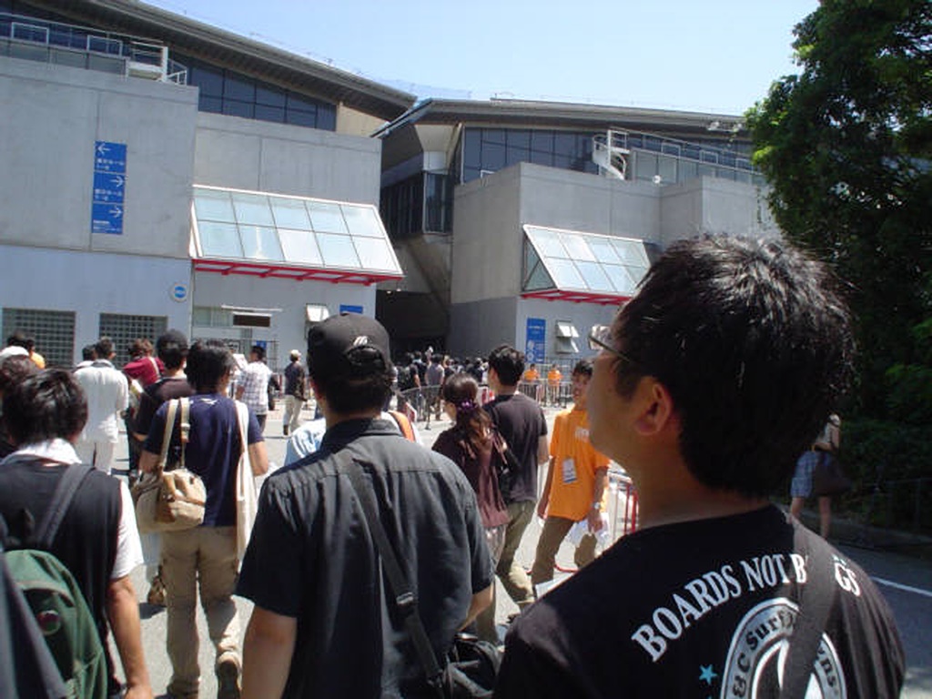 海浜幕張には8時15分についたのですが、最後尾に並んだのは8時50分。 これまでの4列ではなく2列で並んでいたので、もの凄い列の長さで遠かったです。 |