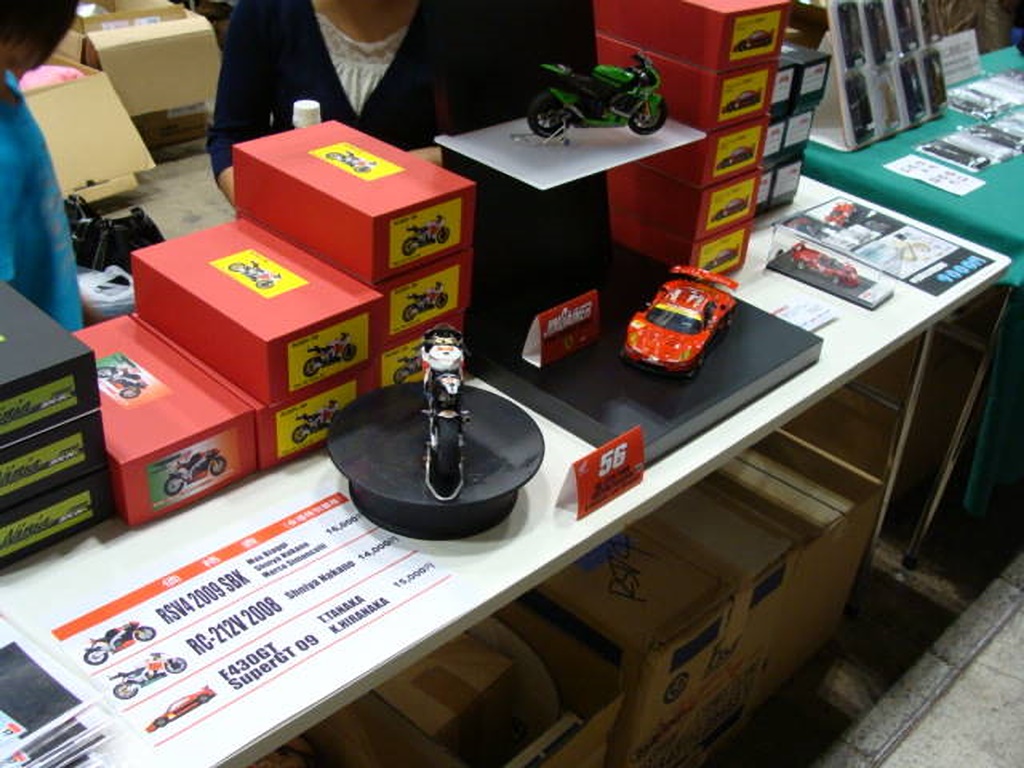 夏はいつも少ないのですが、まさかここまでとは。 ちなみに私はアプリリアを3台持ち込みましたが、1台は客が展示のシートを引っ掛けた拍子に卓から落下、破損したため引っ込めました。