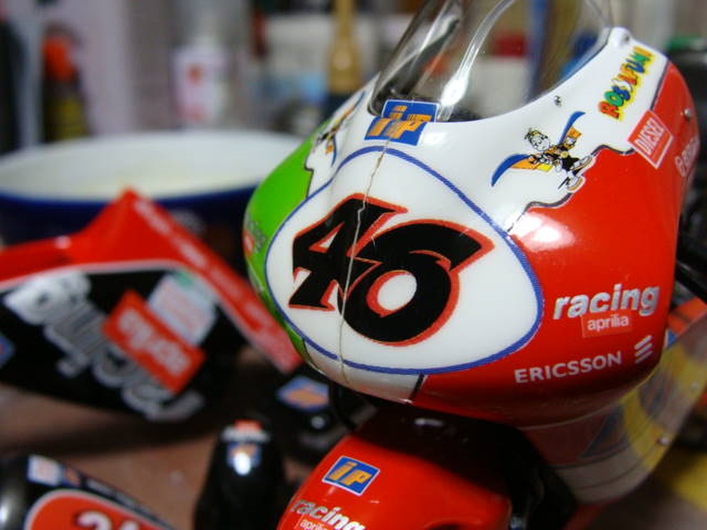 ちなみに、展示卓から落下したNOBURANDアプリリア、塗装等ぱっと見は全く無傷だったのですが、アッパーが真っ二つに。。。 まぁ遠目では大して分からないので、このまま瞬着で固定しました。 これまでに作ったアプリリアの中では一番気に入ってたのでちょっと残念だね。 |
