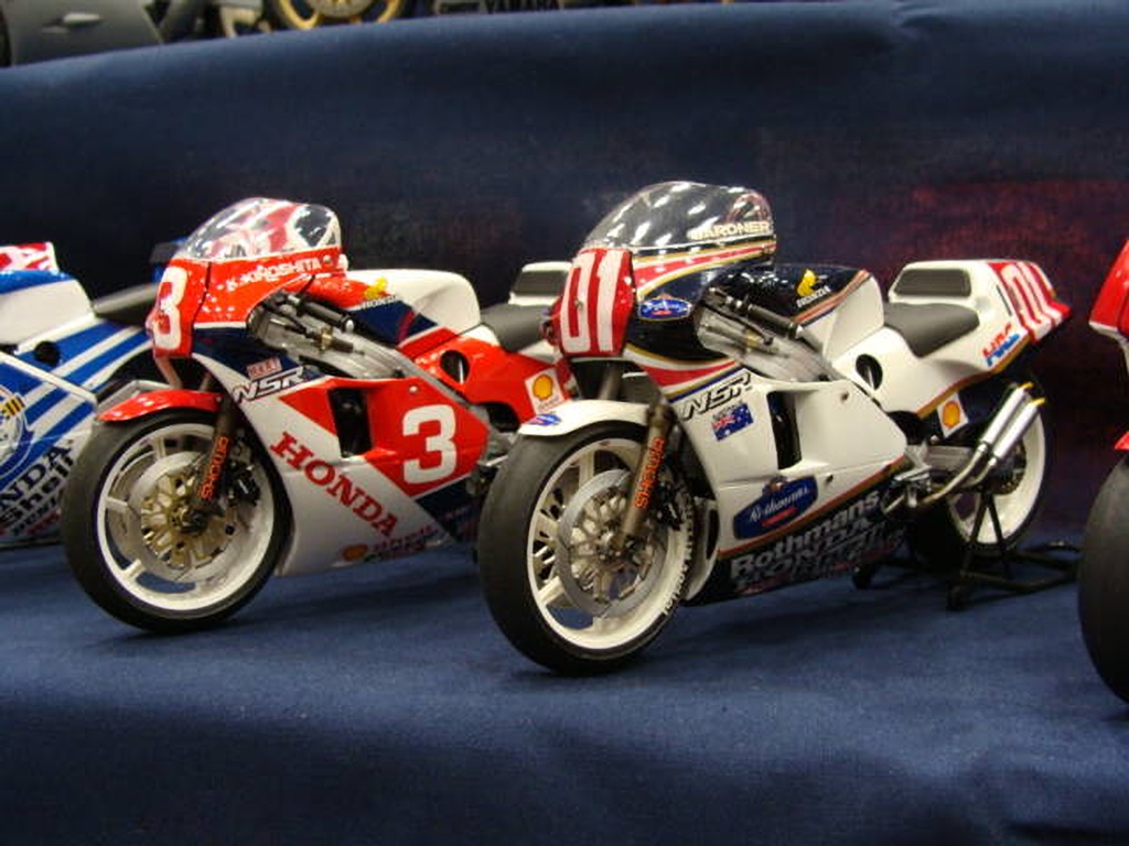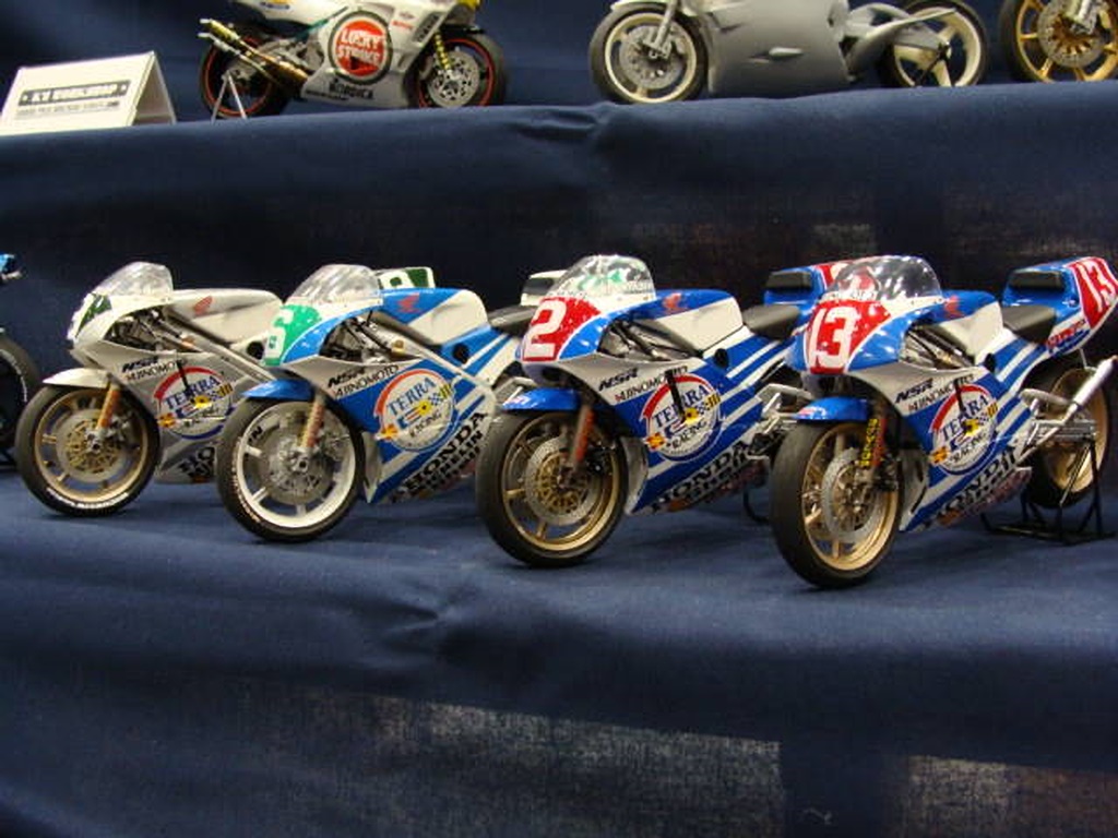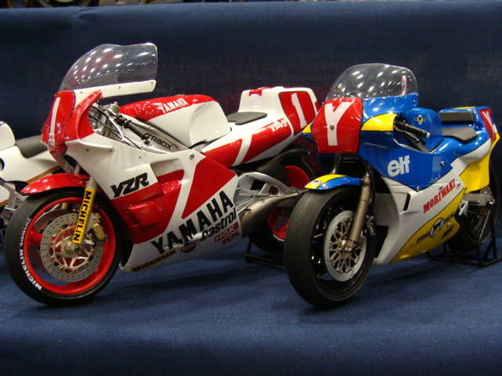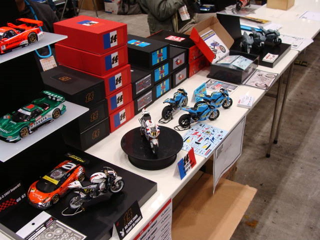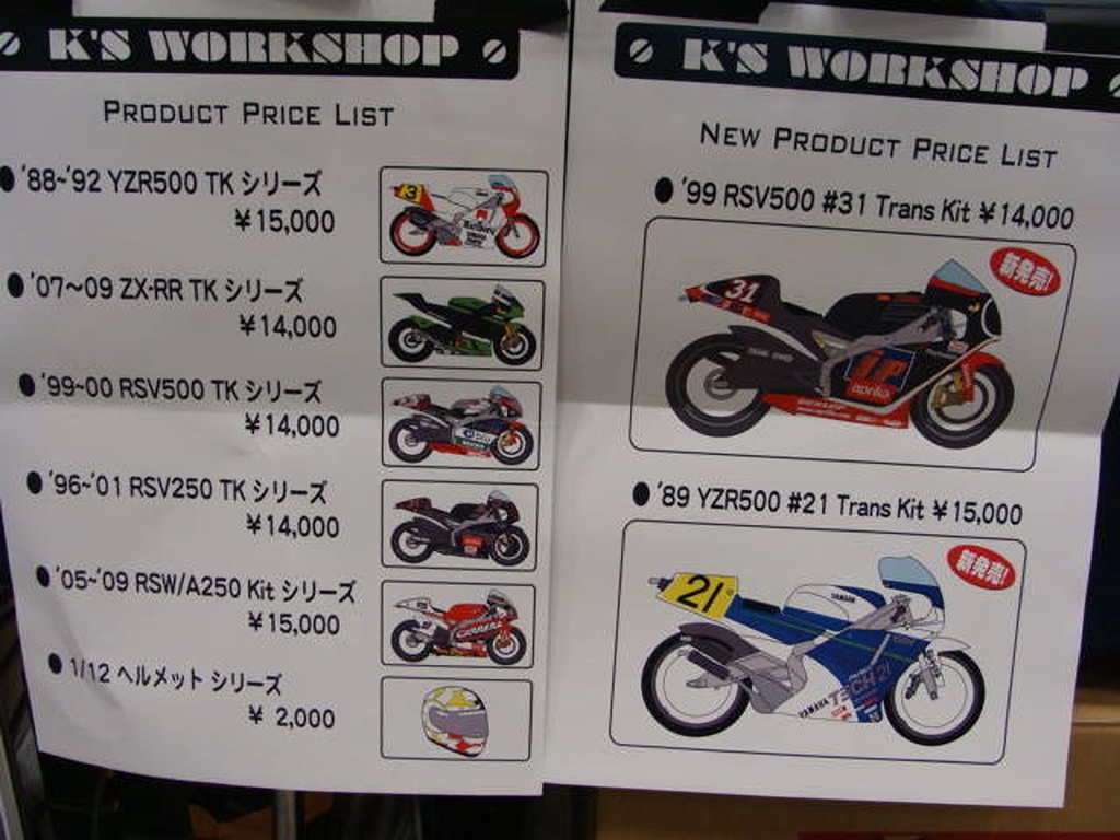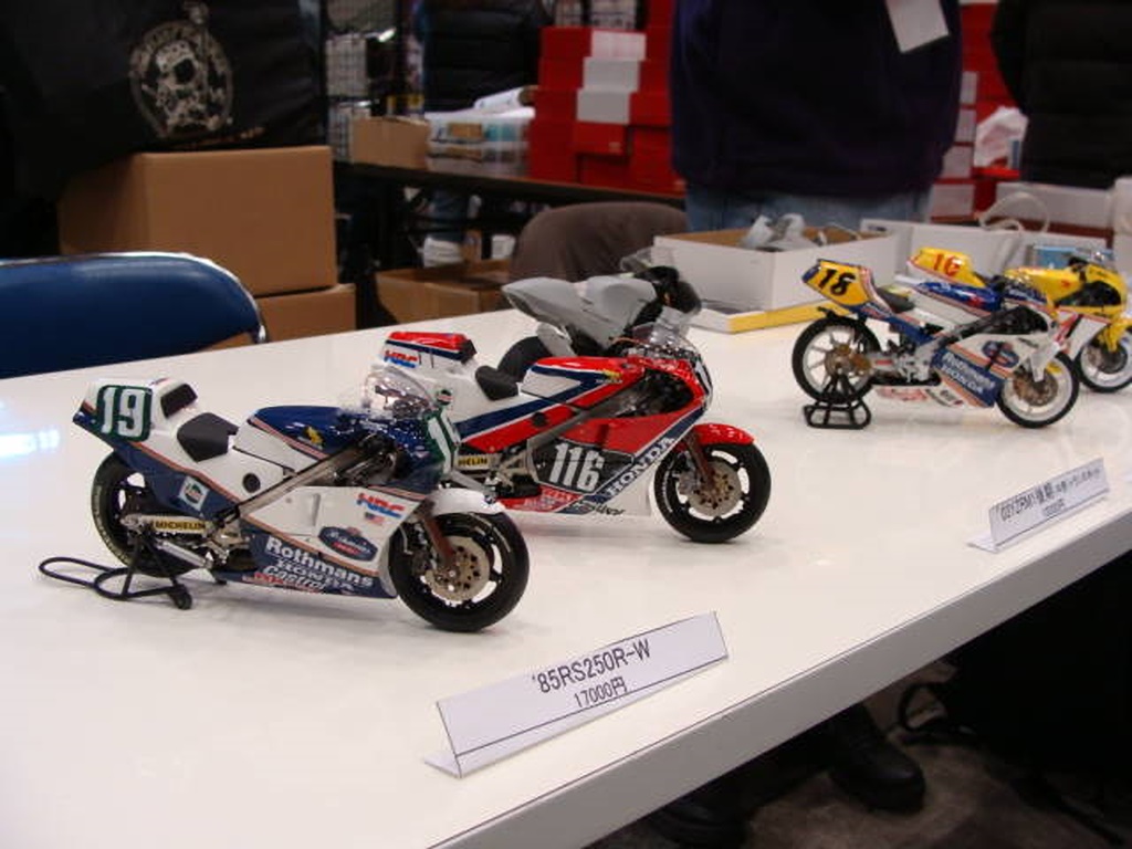 右下のYZRも新作です。 YZRは、ごく一部のマニア用に赤ゼッケンも作ったそうです。
