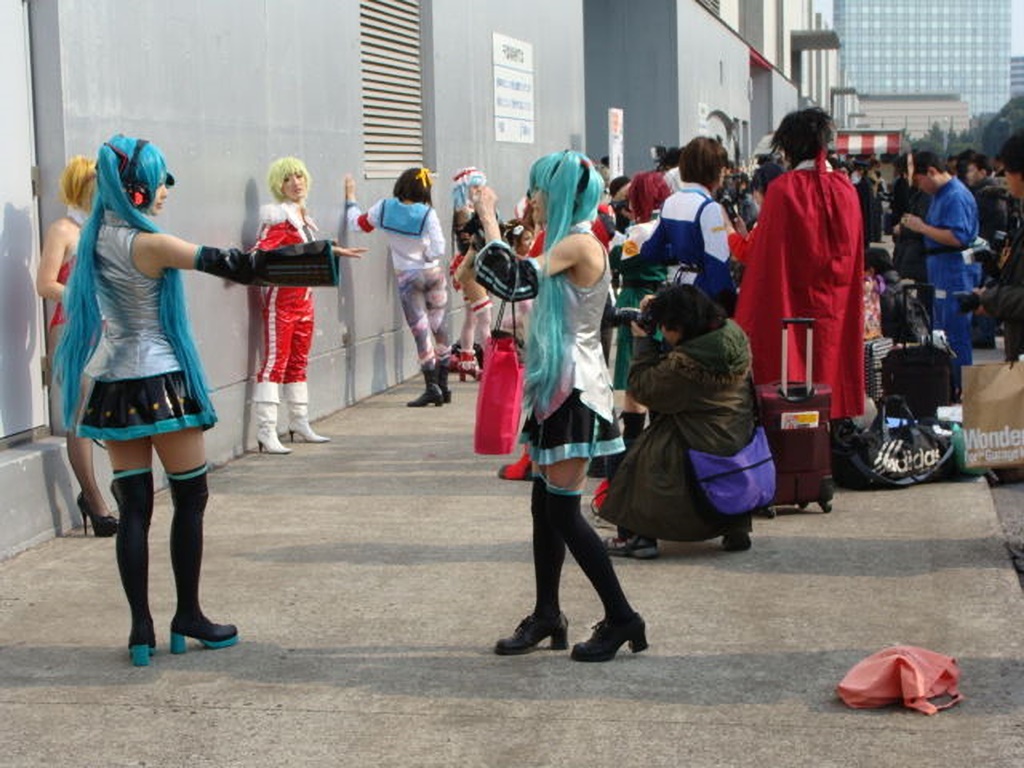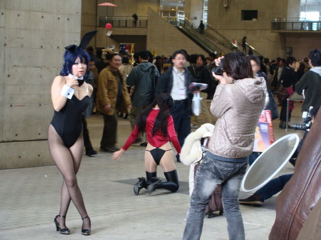 結構寒いんですがね。 こんな感じでひたすら並んで撮影しています。 かなり露出度の高い人やきれいな人もいるのですが、ほぼ同じカッコで完全なおっさんも居たりするカオスな世界です。 |