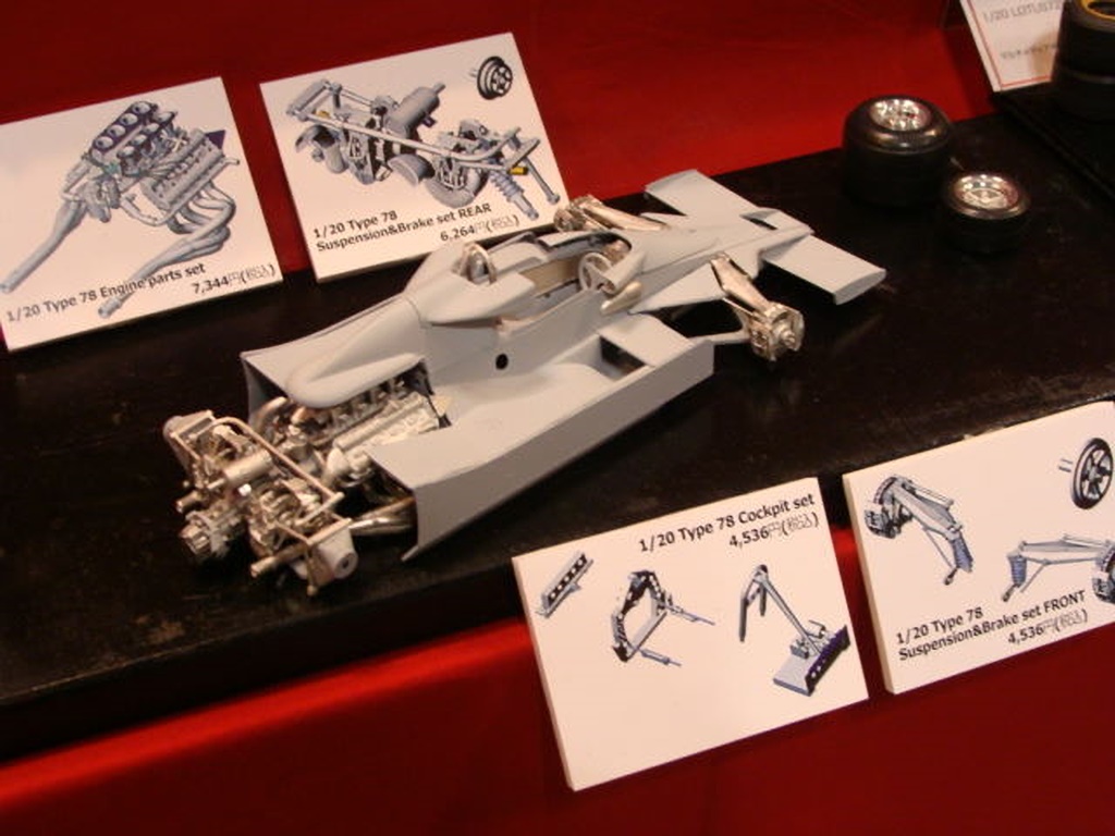 ロータス78のパーツセットフル装備がありました。 確かに凄いですが、全部そろえるとフルキット並みの値段になってますね。 |